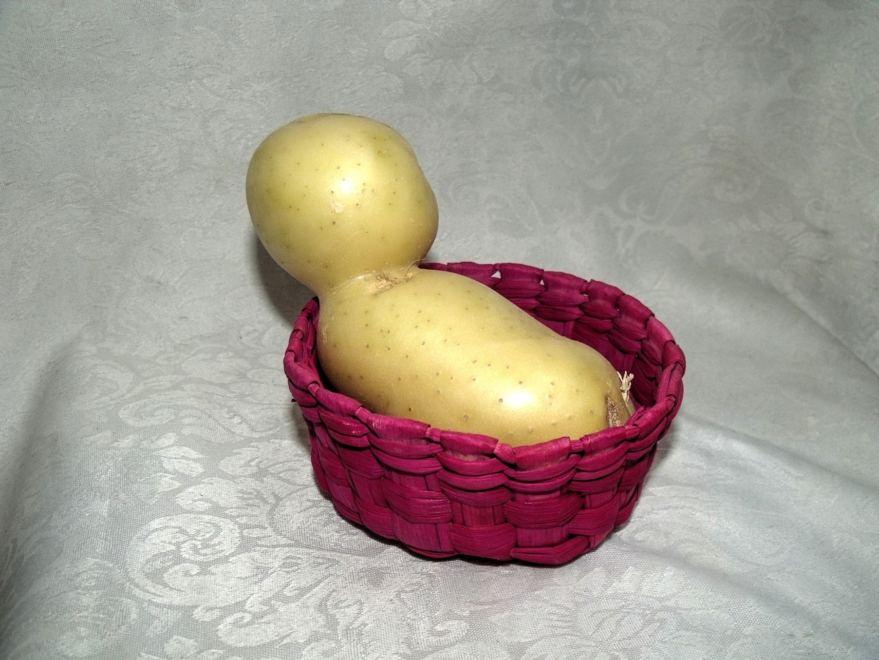 Nature shows that it possesses a whimsical sense of humour when it comes to the garden harvest. A potato curved like a cherub emerges from the soil, inviting a puzzled blink in response.