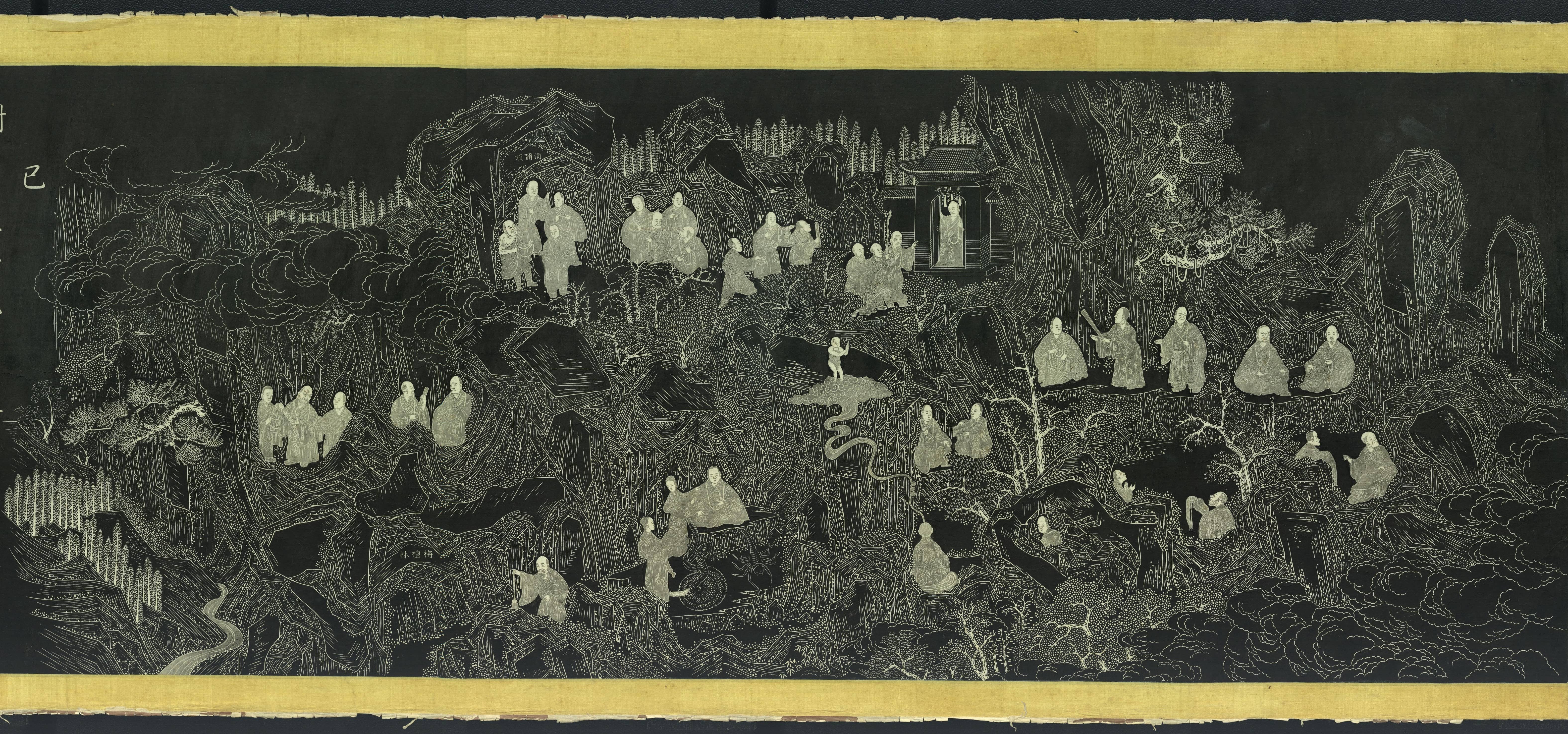 Portraits of 500 Arhats: 己 – Ji, 6th Heavenly Stem Ink on paper, 39 x 1,820 cm, after Wang Fangyue, 1757 National Library of China, Beijing |