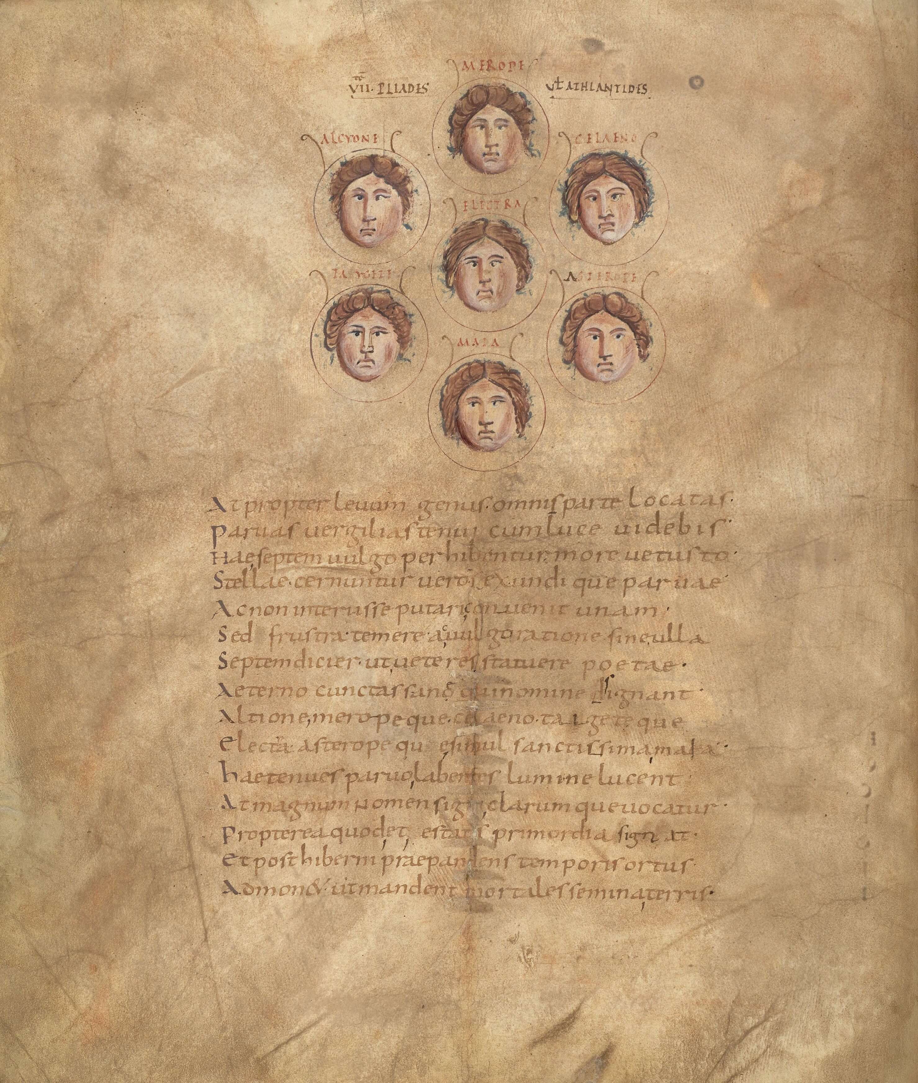 Constellation of the Pleiades From a manuscript which includes a late Roman version of Cicero's Aratea c. 820-40, France, British Library.