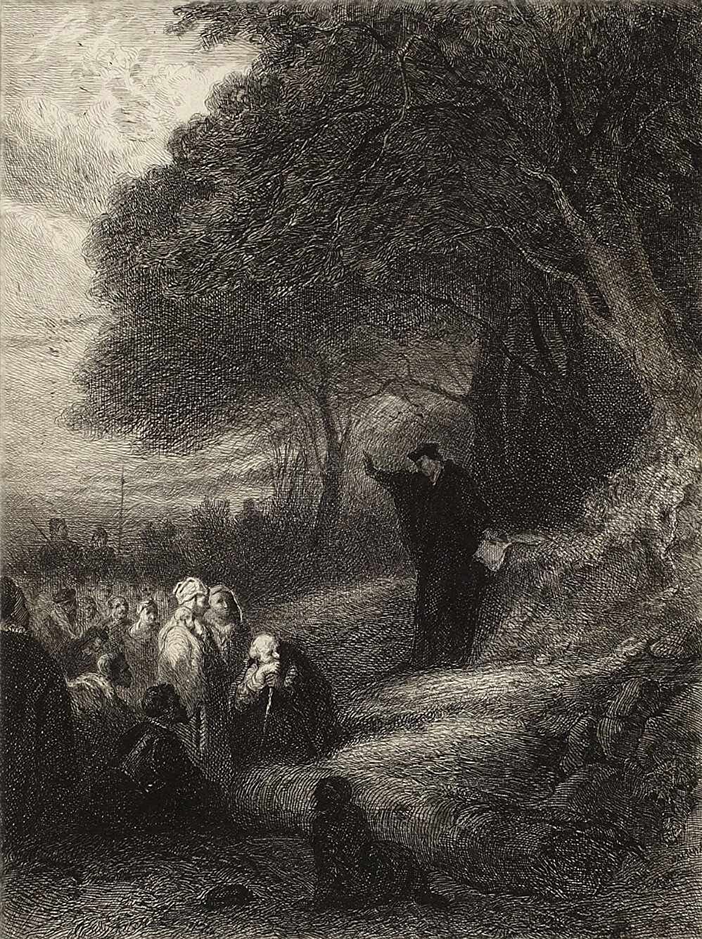 Clergyman Preaching to Crowd in Open-Air