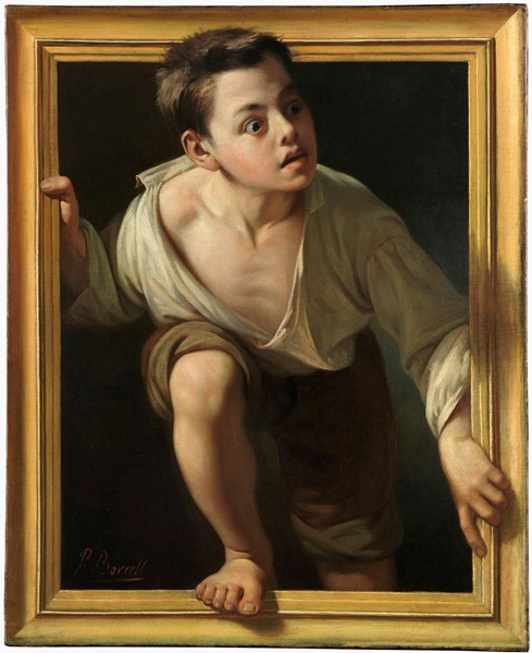 Thing that Cannot Be or Boy Emerging from the Frame) Oil on canvas, 75.7 x 61 cm, by Pere Borrell del Caso, 1874
