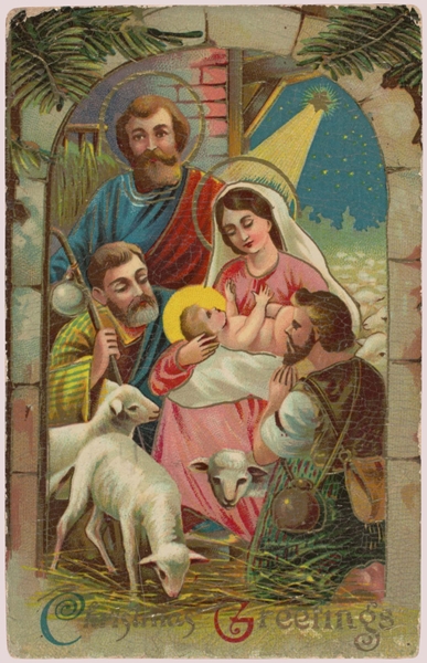 Christmas Greetings (Nativity scene) postcard Early 20th century, by Raphael Tuck & Sons