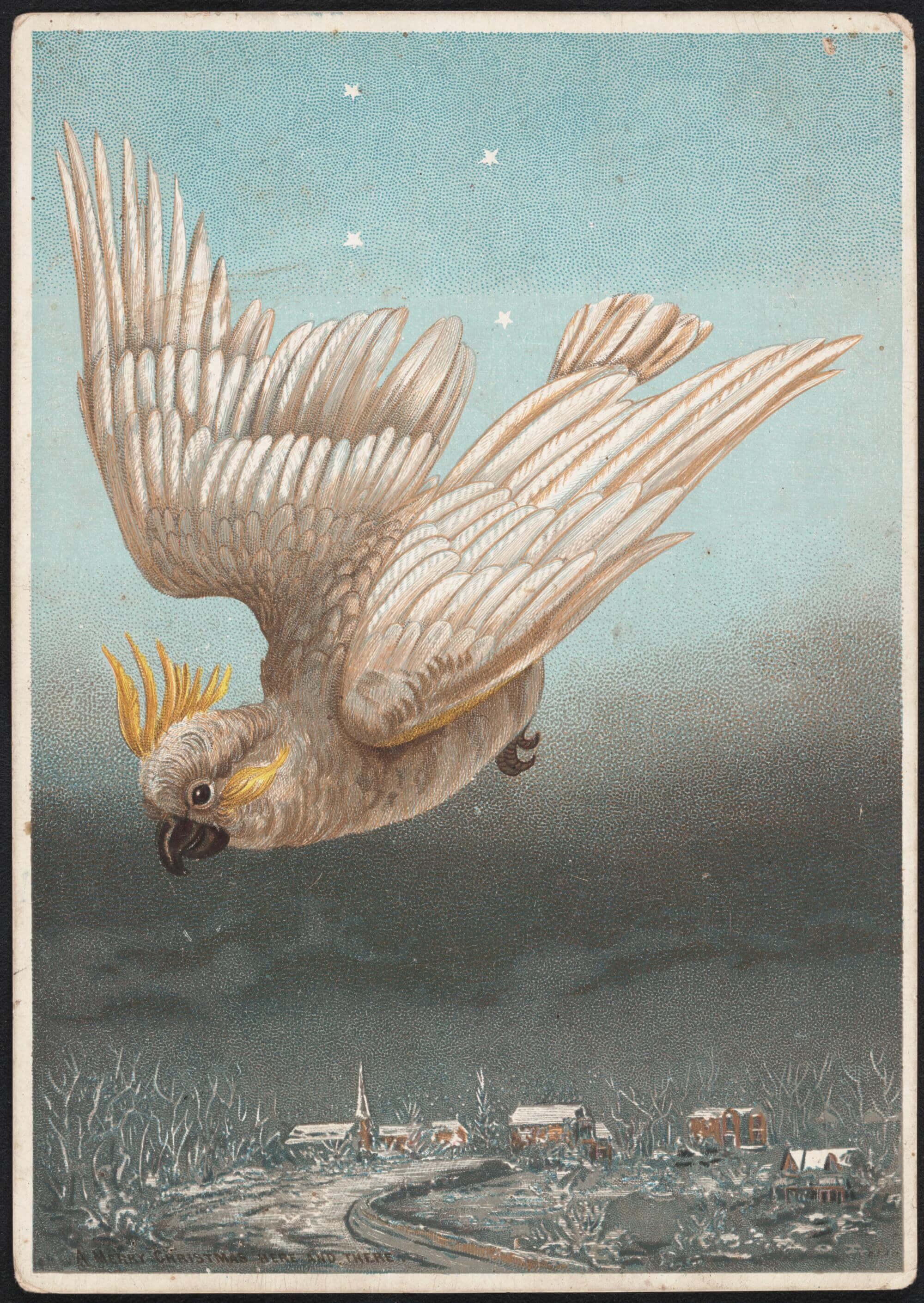 A Merry Christmas Here and There Postcard illustrated by Gibbs, Shallard & Co., 1885