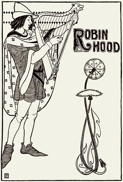 Hood portrayed in a romanticised manner, playing a harp—an artistic