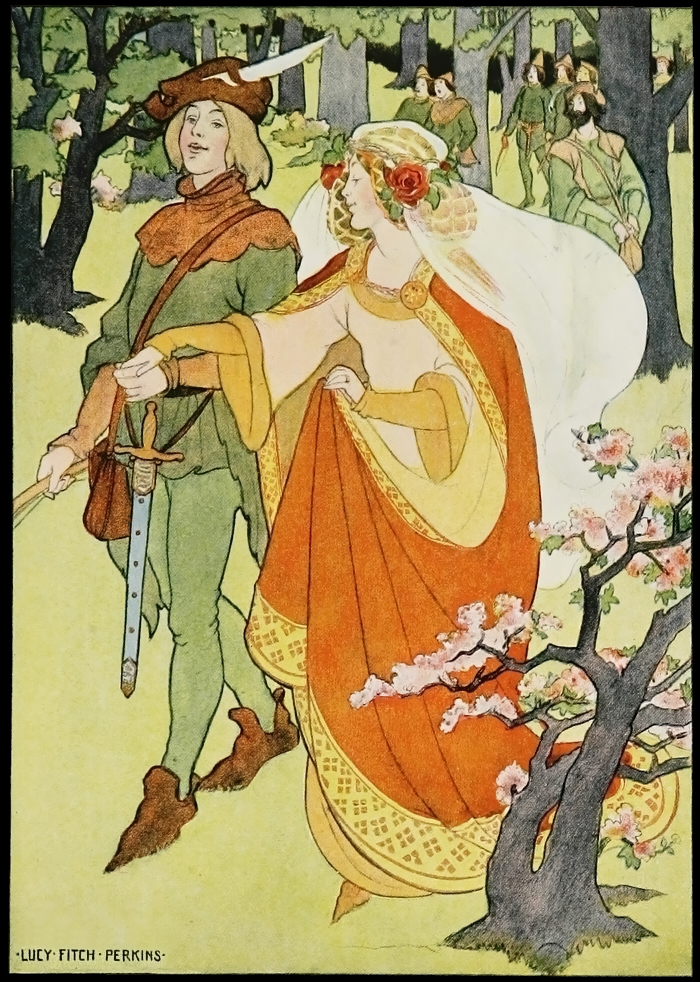 'And thus having ended his merry wedding, The bride looked like a queen' by Lucy Fitch Perkins, from the Robin Hood (English ballads) series