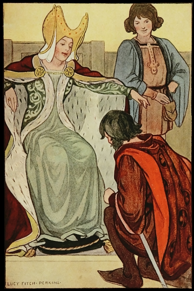 'If it please your grace, I am come to this place, For to speak with King Henry' by Lucy Fitch Perkins, from the Robin Hood (English ballads) series