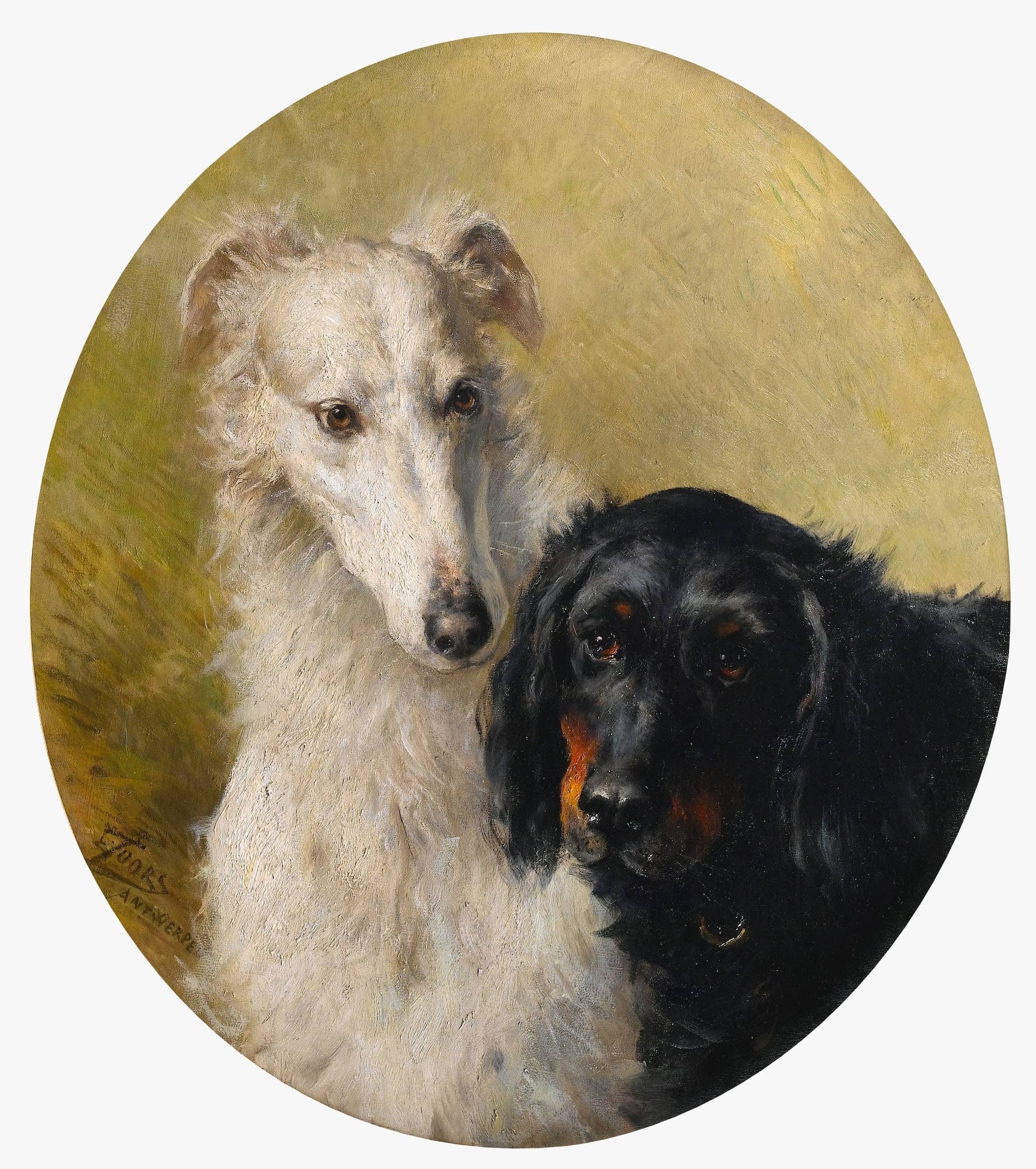 and a Gordon Setter Oil on canvas, 66 x 57.7 cm, by Eugène Joors (1850–1910) Location unknown |