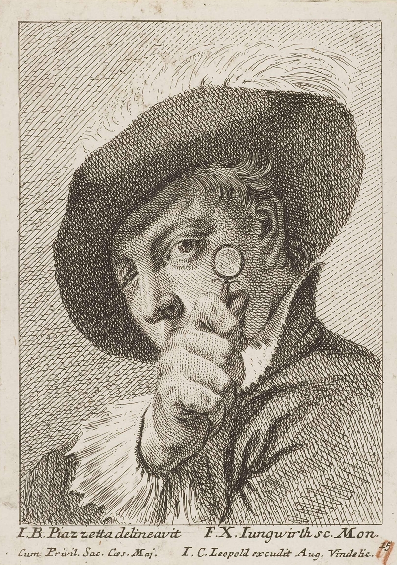 Man with a magnifying glass Etching on paper, 14 x 10.1 cm, by Franz Xaver Jungwierth (1720–1790), after Giovanni Battista Piazzetta Herzog Anton Ulrich-Museum Braunschweig |