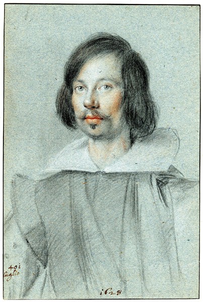 Portrait of an unknown man Black, red and white chalk, on blue paper; by Ottavio Leoni, 1628 The British Museum, London