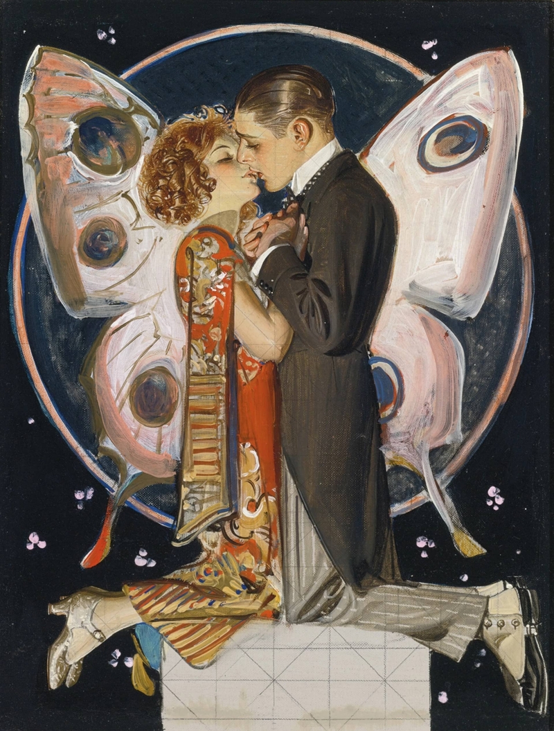 Study for Butterfly Couple Oil on canvas, 43.2 by 33 cm, by Joseph Christian Leyendecker, 1923 Location unknown |