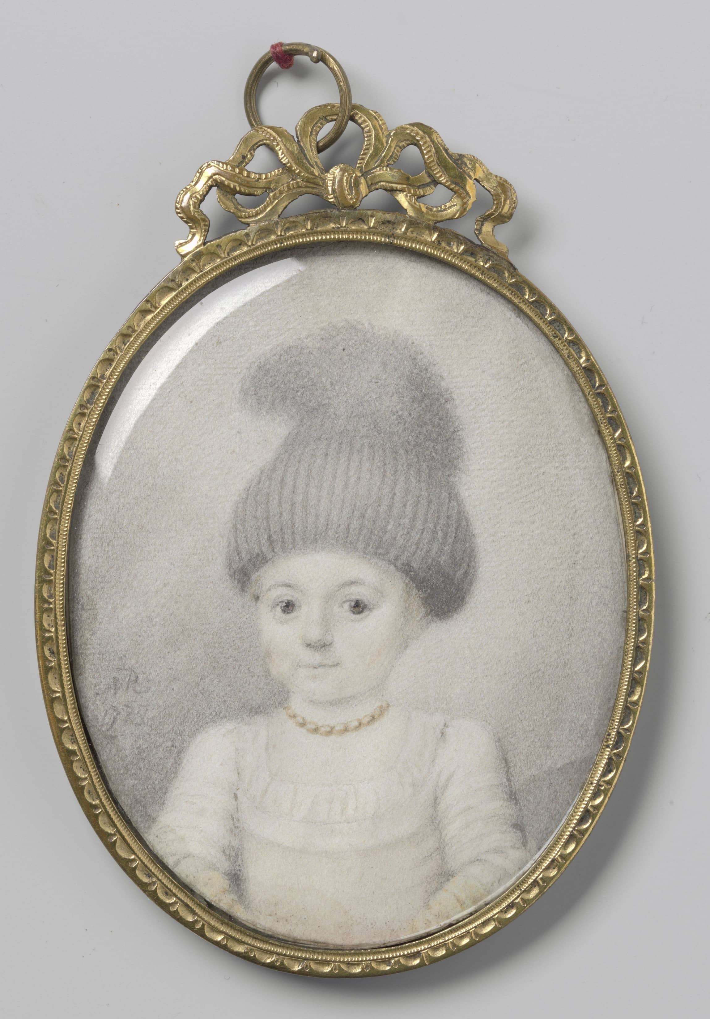 | A young child in formal attire, wearing a tall, conical valhoedje—a traditional Dutch cap that, while functional, was also a deliberate marker of youthful propriety and social decorum. Its exaggerated height and decorative pom-pom reflect the cultural conventions of childhood presentation in bourgeois households of the period. The subdued delicate tones and graceful brushwork are characteristic of Joseph Marinkelle’s manner, in keeping with the Rococo tradition in Dutch miniature portraiture of the period. |