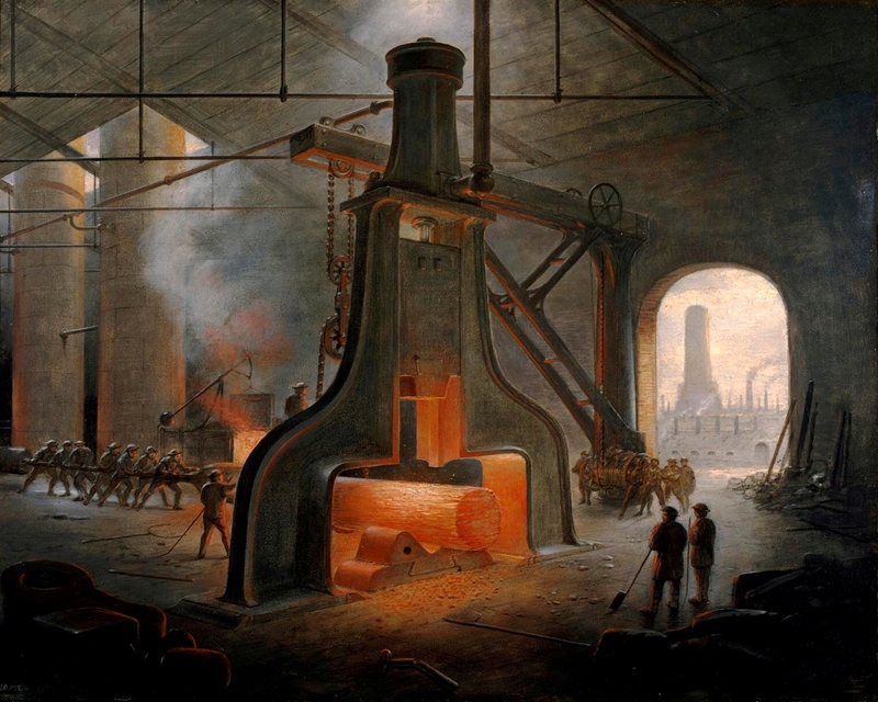 A steam hammer at work Oil on board, 40 x 50 cm, by James Hall Nasmyth, 1871 Science Museum Group, UK |