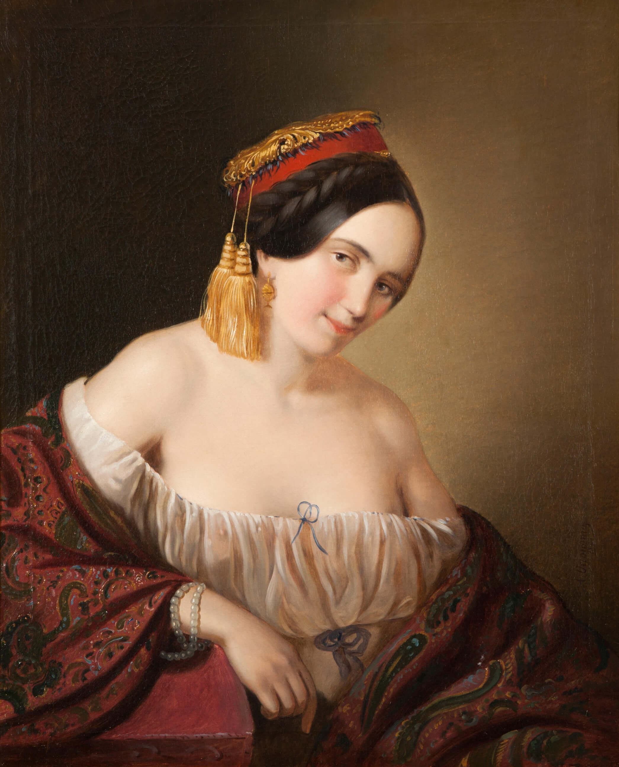 Portrait of a lady dressed in a traditional costume from Pontus Oil on canvas, by Aristides Oeconomo, 1859 Private collection