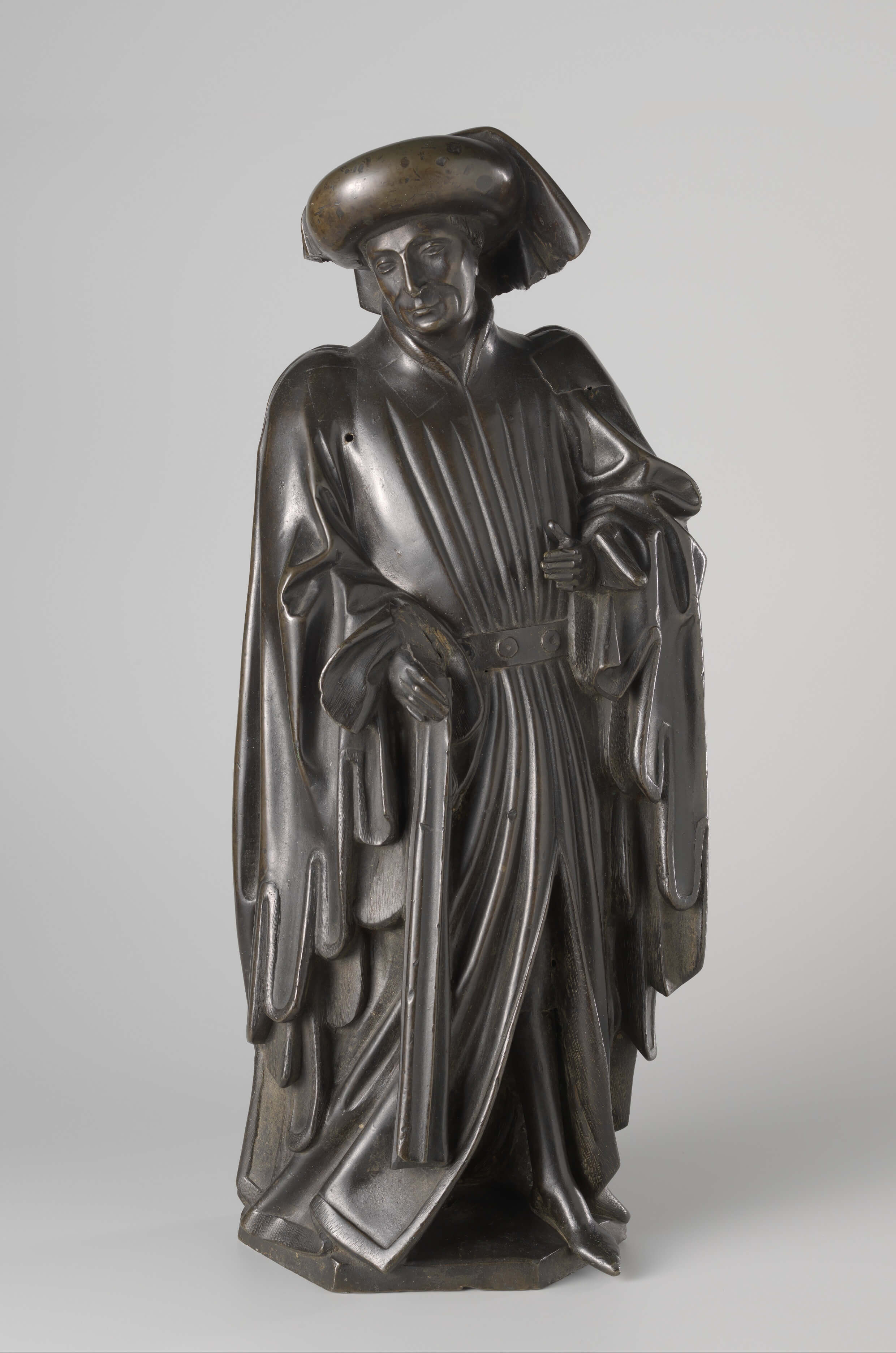 cloak, with a fur hat and crown One of the ten weepers (pleurants) from the tomb of Isabella de Bourbon Bronze, 55 cm x 22.5 cm, attrib. to Renier van Thienen (sculpt.) and Renier van Thienen (cast), c. 1475-76 Rijksmuseum, Amsterdam |