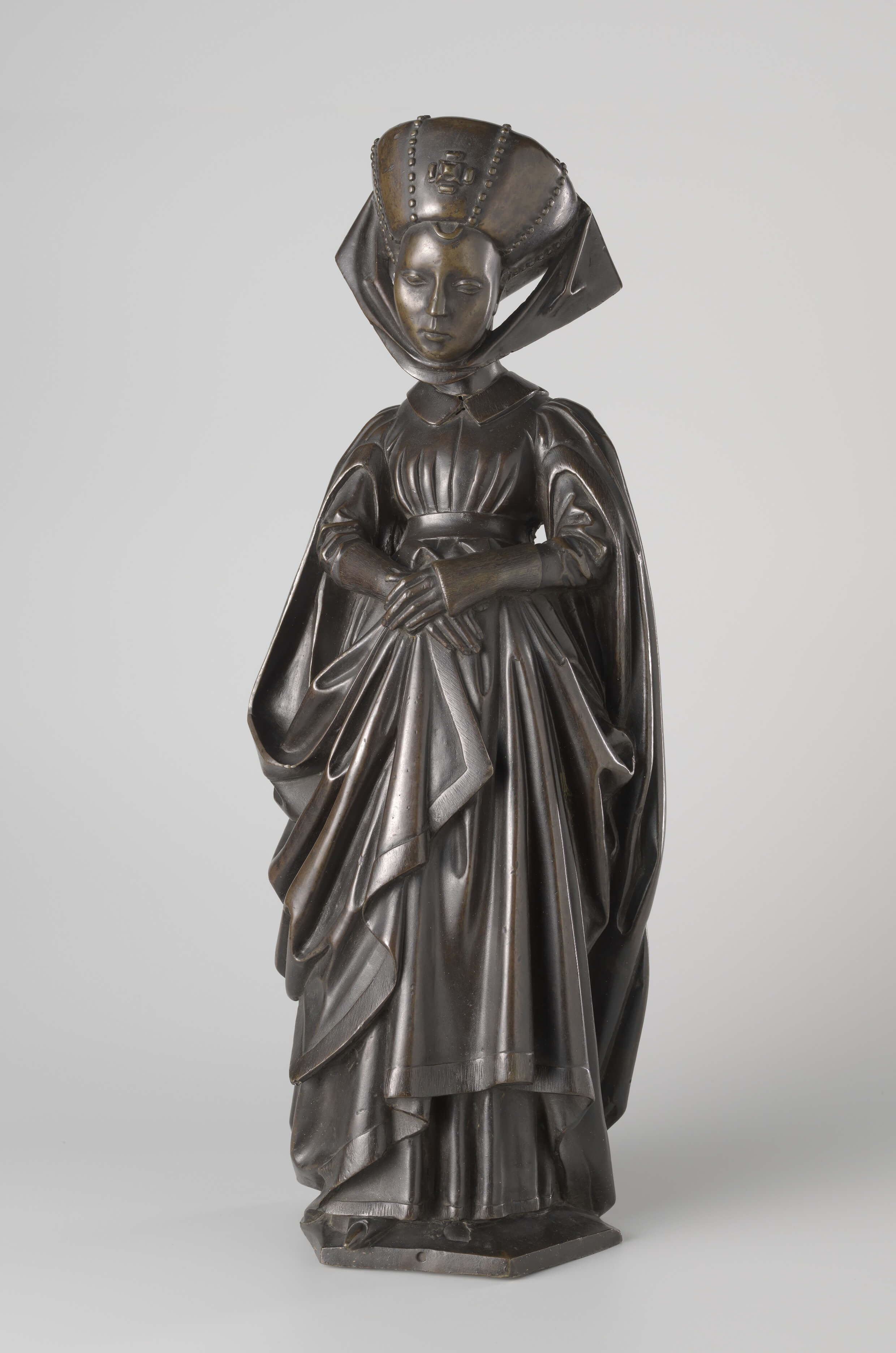 dressed in a houppelande and a turban with pearls One of the ten weepers (pleurants) from the tomb of Isabella de Bourbon Bronze, 56 cm x 21 cm, attrib. to Renier van Thienen (sculpt.) and Renier van Thienen (cast), c. 1475-76 Rijksmuseum, Amsterdam |