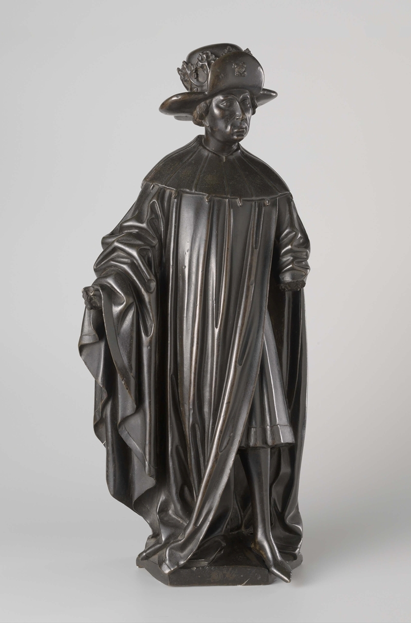 cloak, with a fur hat and crown One of the ten weepers (pleurants) from the tomb of Isabella de Bourbon Bronze, 54.5 cm x 24.5 cm, attrib. to Renier van Thienen (sculpt.) and Renier van Thienen (cast), c. 1475-76 Rijksmuseum, Amsterdam |