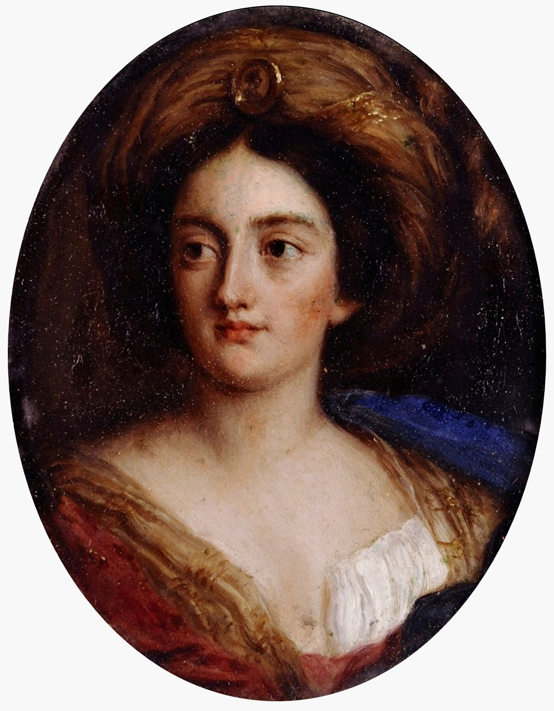 Hortense Mancini, Duchess of Mazarin, as Cleopatra Oil on copper, anonymous, after Voet's portrait, c. 1670 Royal Collection