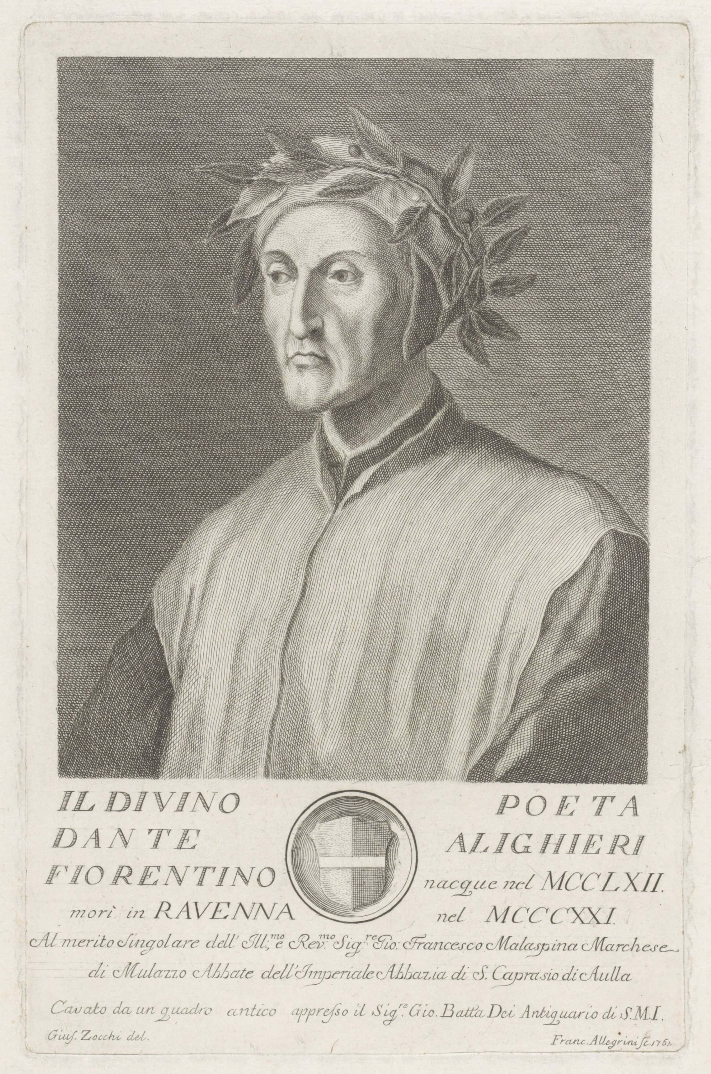 Alighieri, Florentine. Born in 1261; died in 1321 in Ravenna. To