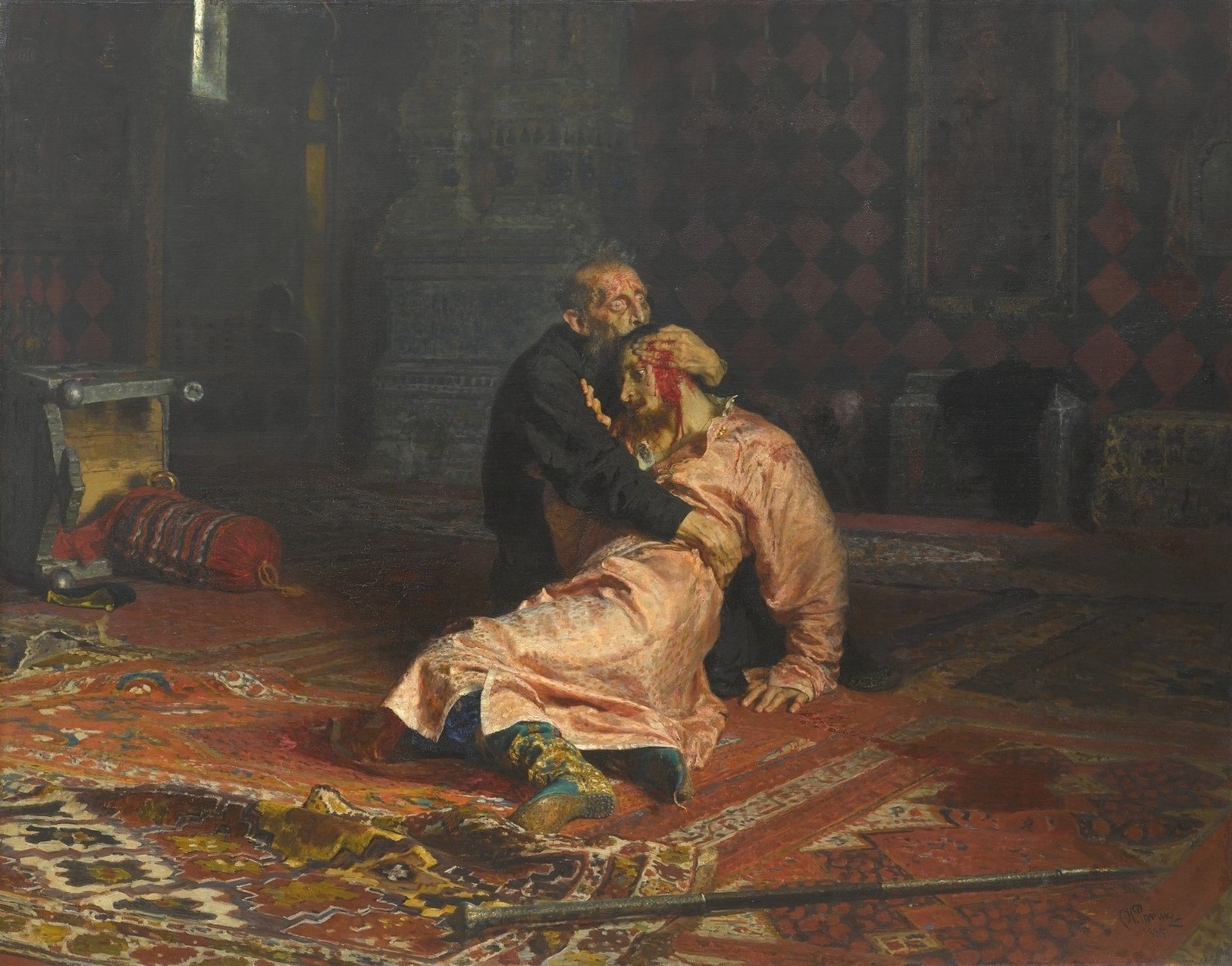 Ivan the Terrible and his Son Ivan on November 16, 1581 Oil on canvas, by llya Repin, 1885, Tretyakov Gallery
