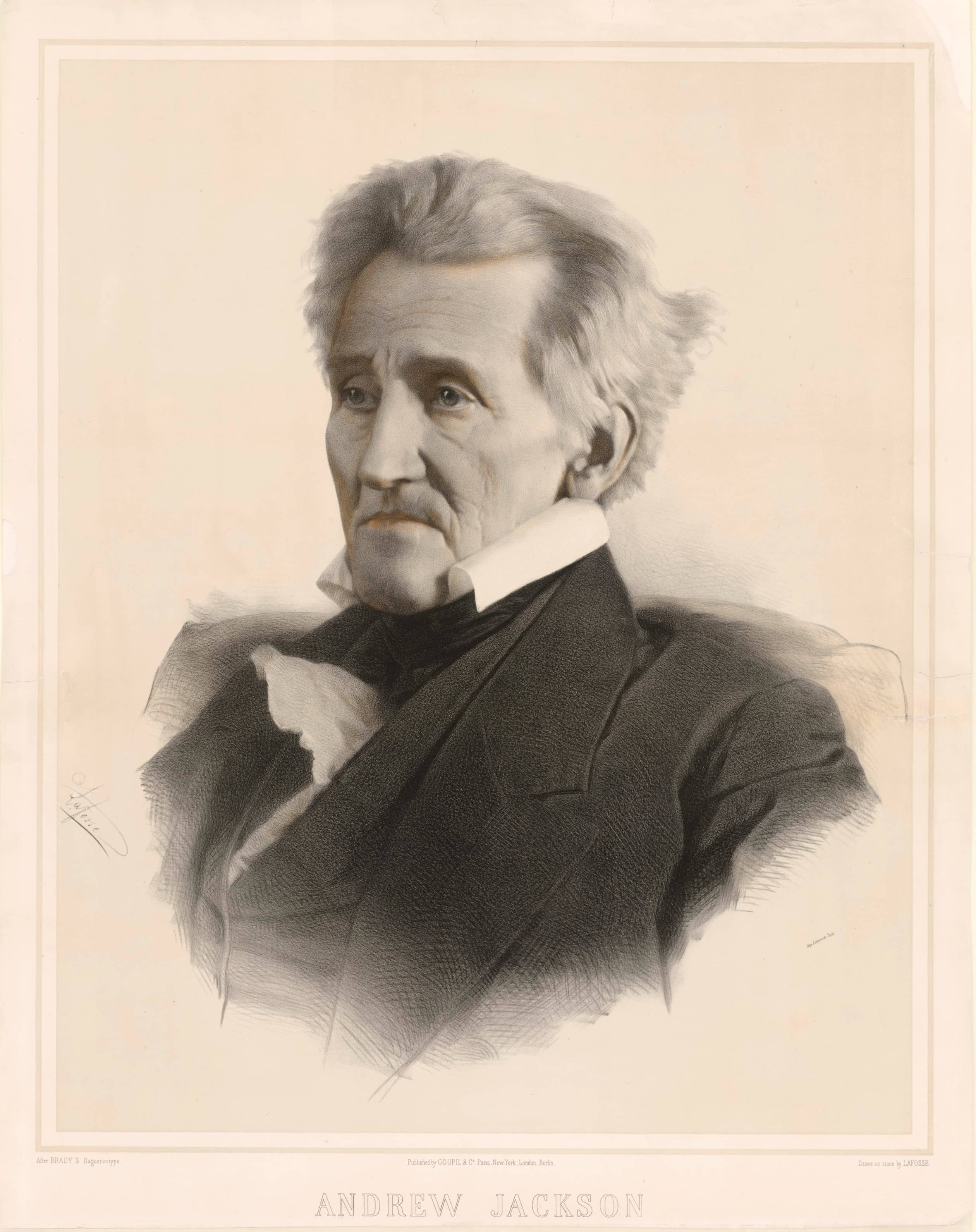 Andrew Jackson Lithograph with tintstone on paper, 70.4 x 55.1 cm, by Jean-Baptiste Adolphe La Fosse, 1856 National Portrait Gallery, Smithsonian Institute, Washington, DC