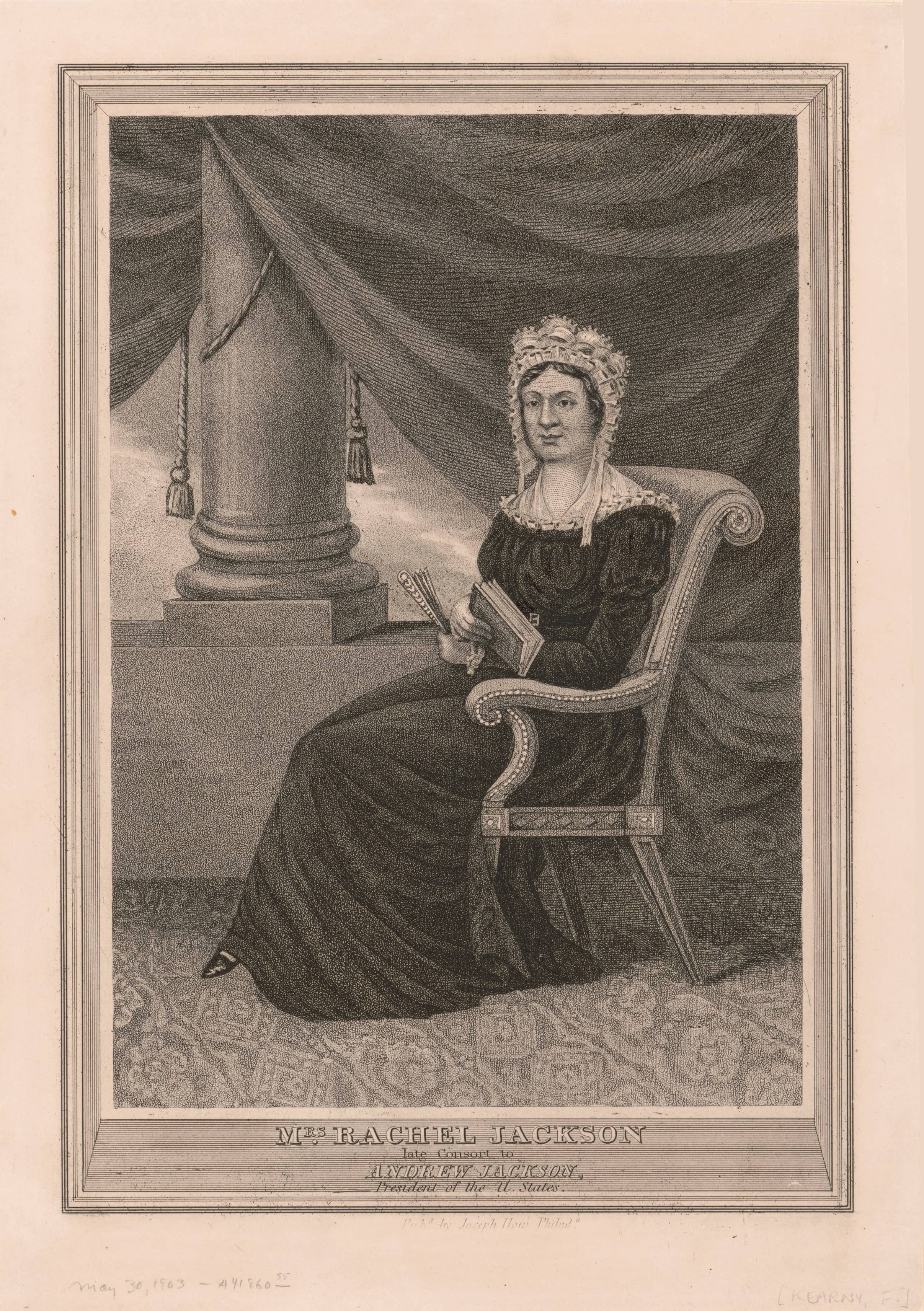 Mrs Rachel Jackson, late consort to Andrew Jackson Engraving, 29 x 20.5, by Francis Kearny, c. 1829 Library of Congress, Washington, DC