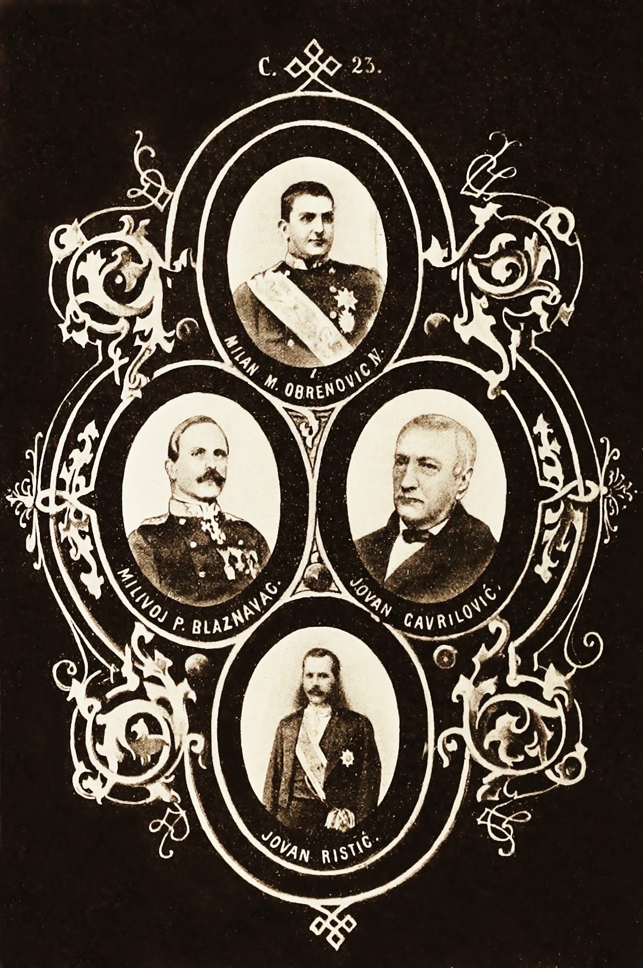 Prince Milan Obrenović IV and his three regents: Milivoj Blaznavac, Gavrilović and Ristić