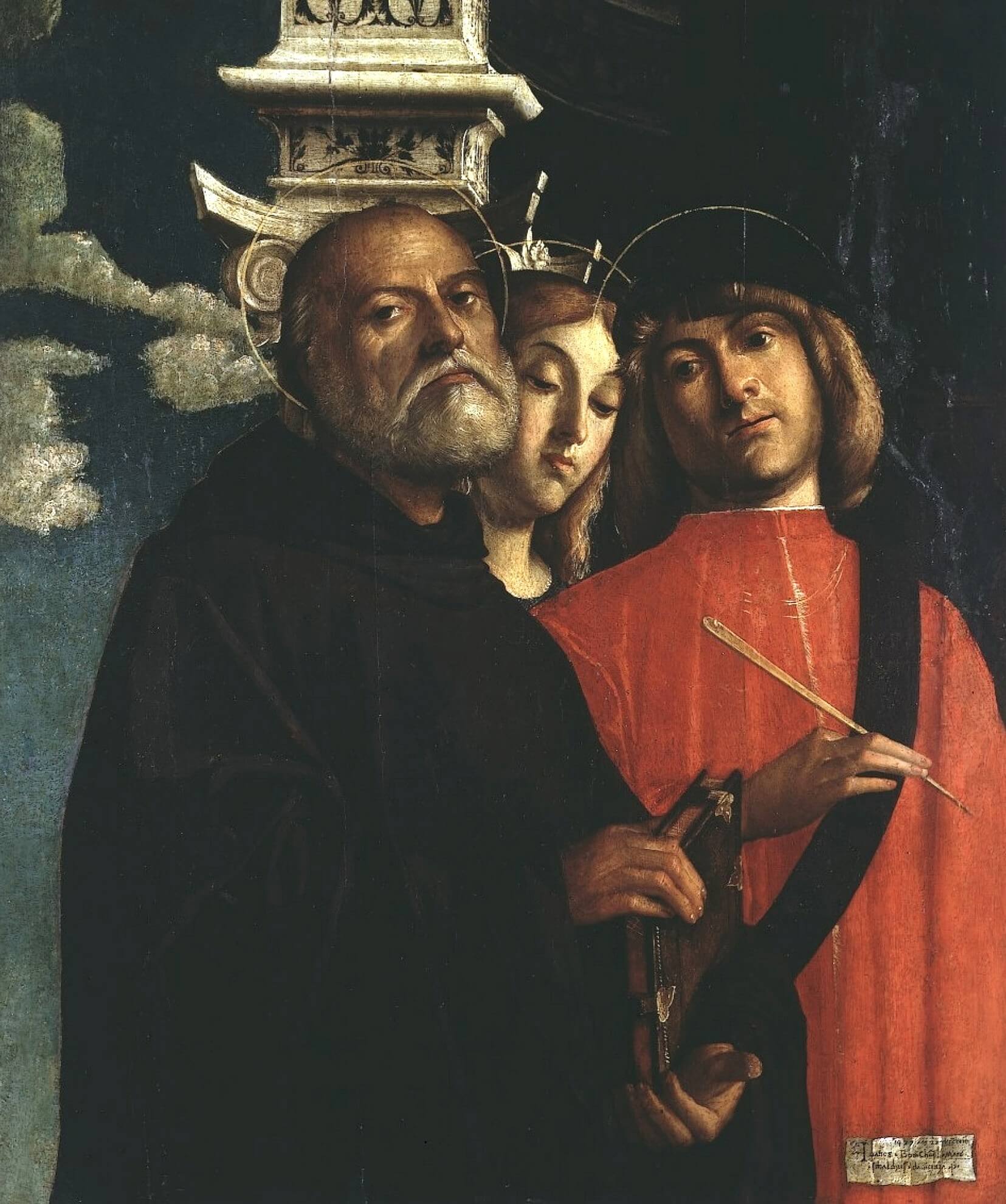 Saints Benedict, Thecla (?) and Damian Oil on panel, 82.8 x 68.3 cm, by Giovanni Buonconsiglio, 1497 Galleria dell'Accademia, Venice